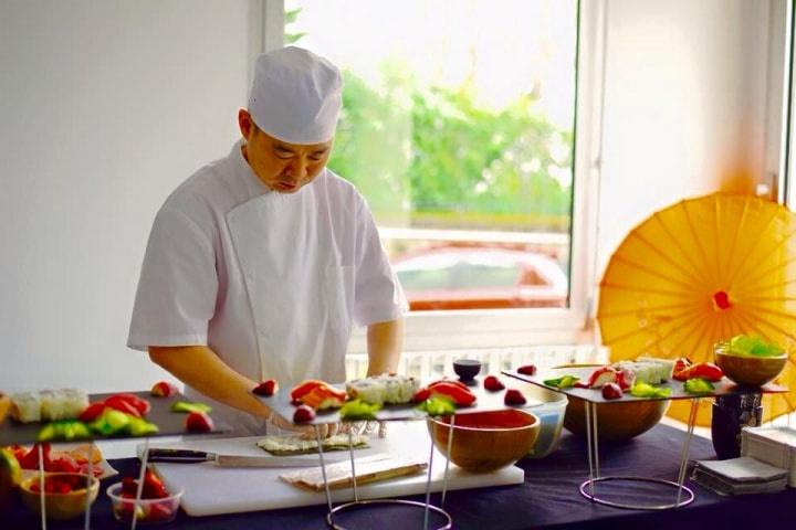 Dans le cas d'un cocktail ou d'un vin d'honneur, faites intervenir le cuisinier pour dévoiler ses secrets au cours d'un atelier auprès de vos invités ! Ces derniers seront ravis de rouler les sushis et d'apprendre les gestes adéquats pour réaliser ce plat japonais. Vous apprendrez à découper le saumon, réaliser un assaisonnement typique et la cuisson du riz japonais ainsi qu'à utiliser la natte de bambou pour enrouler parfaitement vos mets.